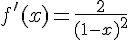 (si je me goure pas.... f'(x) = -2x/(1-x)^2)