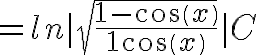 et tu doit trouver -1/2 ln(abs[(1+cosx)/(1-cosx)]) ou encore ln[tan(x/2)]