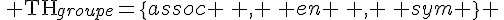 on ne parle pas de l'ensemble des théorèmes "générés" à partir des axiomes de la théorie, en prenant par exemple les axiomes d'associativité (assoc), d'élément neutre (en) et d'élément symétrique (sym), mais de l'ensemble de ces 3 axiomes. On a ainsi :