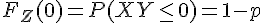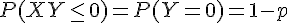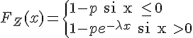 et soit Y une vad de loi de Bernoulli de paramètre p (P(Y=1) =p). On suppose que X et Y sont indépendantes et l'on pose Z =XY.