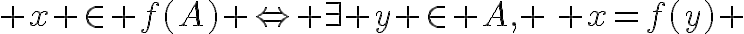 r tt y appartenant à F ;y appartient à f(A) <---> x appartient à A et y=f(x).ensuite soit f une application de E dans F et B une partie de F.l'image reciproque de B par f est