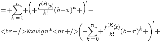 Somme pour k variant de 0 jusqu'a n de [ ( (f^(k))(x) / k! ) * (b-x)^k ]