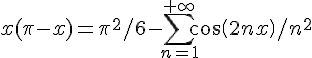 je sais qu'il faut trouver une parité de la fonction ,j'ai trouvé qu'elle était paire en disant que f(-x)=f(x) et pour l'intervalle [-pi,0] j'ai f(x)=x(pi+x) j'en suis pas sur mais c'est pas ce qui me dérange