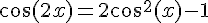 salut tout le monde, J'aimerais savoir comment est-ce qu'on pourrait démontrer l'égalité suivante: -cos2x = 2cos2x - 2cosx ????? Merci beaucoup