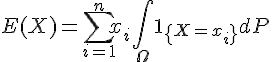 pour qu'une v.a integrable on E(X)=l'integral sur oméga de X dP,comment on a obtenu E(X)=sigma xi P(X=xi)