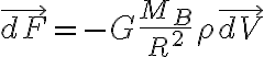Ma question est : Comment intégrer en B la force gravitationnelle de l'ensemble de la masse jaune ?