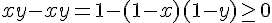est ce que f = x+y-xy est compris entre 0 et 1 ?