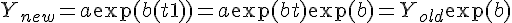 Si t augmente d'une unité alors ln Y va augmenter de b unités. J'ai envie de dire "donc Y augmente de e^b unités" mais j'ai l'impression que ce n'est pas ça.
