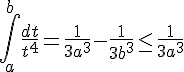 [intégrale de a à b de (exp(-t²)/t^4)dt ] <= [exp(-a²)/(3a^3)]