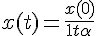 je ne comprends pas pourquoi cette courbe serait croissante: je m'attends à x(0)=1 et x(infini)=0. Non ?