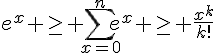 e^x >= Somme de 0 à n e^x >= x^k / k!