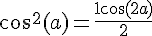 Tu dois donc commencer par linéariser les termes en cos² (vu que ceux là, on est sûr de ne pas en vouloir à la fin). Justement, tu as une formules qui te permet de linéariser cos² : 1ere formule de HigginsVincent