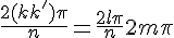 Si non, on aavec l qui appartient à {0,1,2,...,n-1} et m un qui dépendras de k et de k'. Ainsi, comme tout angle dans le plan complexe est donné à 2pi pres, notre angle est le même que
