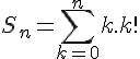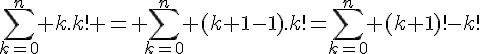 Σ k.k! = 0x0!+1x1!+2x2!+...+(n-1)x(n-1)!+nxn!=(n+1)!-1
