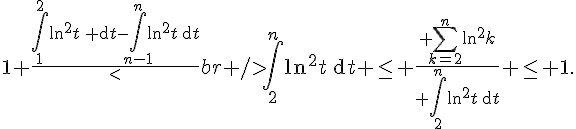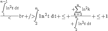 le terme prépondérant c nln²n et en comparant avec la série de Reimann on trouve que la série diverge! :d merci pour ton aide! mais je n'arrive toujours pas à montrer que le terme de gauche de l'inégalité tend vers 1!