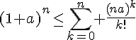 (1+a)^n inferieure ou egale à 1+(na/1!)+((na)²/2!)+.....+(((na)^n)/n!) avec "a" appartenant à R+* et "n" appartenant a N*