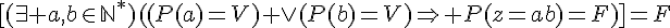 (P(Z^n=a^n*b^n) = F ==> (P(a^n) = V)∨(P(b^n) = V)) [négation de (1)]