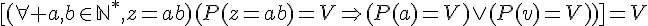 [(P(Z^n=a^n*b^n) = V ==> (P(a^n) = V)∨(P(b^n) = V))]