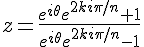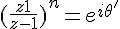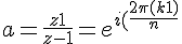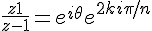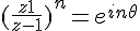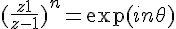 La seconde (équivalente à la troisième, en fait, si E est l'exponentielle) donne :Résoudre l'équation (E) : ((z+1)/(z–1))n = einθ, avec θ ∈ ]0,2π/n[