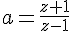 Sinon , la méthode inspirait par breukin (mais dans tous les cas il te restera à isoler z en fonction de a ....) :