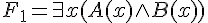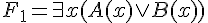 F1 = NOT ( EXISTS x (A(x) OR B(x)) )