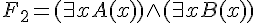 F2 = ( NOT EXISTS x0 A(x0) ) AND ( NOT EXISTS x1 B(x1) )
