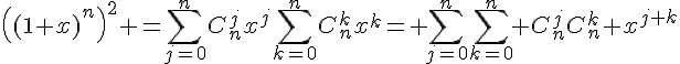 (1+x)^2n = (1+x)^n . (1+x)^n et binôme de Newton + identification des termes de plus haut degré. C'est cette démo que je cherche.