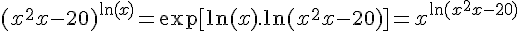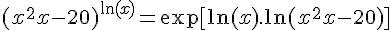 f(x)=(x^2+x-20)^(ln(x))