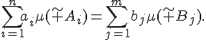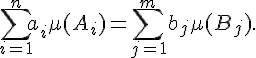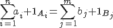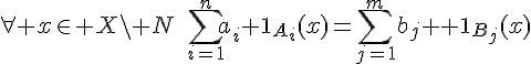 Formulée comme tu l'as formulée je ne comprend pas ta question. Je suppose que ce que tu veux montrer c'est que la valeurs de l'intégrale de Lebesgue qu'on associe à une fonction étagée (qui se définit à partir d'une des écriture de la fonction étagée comme somme de fonctions indicatrices) ne dépend pas de l'écriture qu'on a choisit.