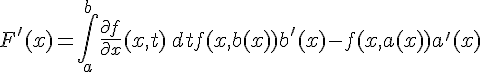 Salut à tous, je souhaiterai savoir si il y a une méthode pour dériver une integrale allant de a(x) à b(x) de f(x,t) par rapport à t puis pour deriver une integrale allant de a(x) à b(x) de f(t) par rapport à t et enfin une integrale allant de a à b de f(x,t) par rapport à t. Merci d'avance.