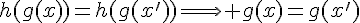 Maintenant il faut que je trouve, une fonction non injective faisant rater le résultat 1) et une fonction non surjective faisant rater le résultats 2). J'ai prit x² pour les deux sa marche ? Ca me donne pour la première f(x) = + ou - g(x) et la seconde h(x²)=g(x²) mais je ne sait pas si sa marche ...