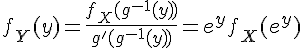 Si G est la fonction de répartition de Y, on a G(y)=P(Y <= y)=P(X <= ey)
