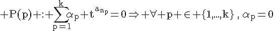 Tu obtiens la nullité des scalaires en regardant la relation pour une valeur debien choisie.