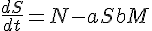 Du coup pour repondre a la question 2 j'ai fait dS/dT = N+bM-aS et dM/dT = N+bM-cM