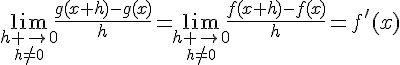 existe, ce qui est le cas puisque est dérivable et de plus on connaît la limite qui est . On a donc