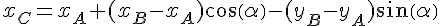 j'ai un triangle ABC isocèle, je connait les coordonnés de A et B, je connait AB=AC, aussi je connait BC, je connait les angles bâc, c^ba, b^ca, et je cherche uniquement les coordonnés de point C.