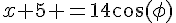 x = -5 + 14 cos(t)