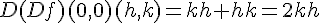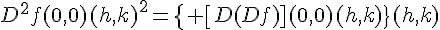 Ouais, mais là je fais quoi ? Ya plus rien à évaluer...théoriquement j'aurais du tomber sur une application linéaire, et donc j'aurais pu évaluer qqchose, mais là j'ai du mal. A moins que je sois tombé sur une constante, dans ce cas 2kh(h,k)=2kh=D^2f(0,0)(h,k)^2