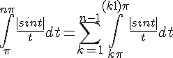 Ton intégrale de gauche est supérieure à l'intégrale de la valeur absolue de sin(x)/x.