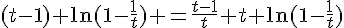 la limite de (t-1)ln[(t-1)/t] quand t tend vers l'infini vaut -1, donc la remarque de médiat était tout à fait pertinente et fonctionne aussi vite...