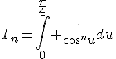 Bonjour! alors voila j'ai un dm et j'arrive pas a résoudre, il faut calculer par recurrence l'integrale de 1/((cosu)^n) de 0 à pi/4