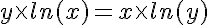 en passant au log, a^b=b^a devient (lna)/a=(lnb)/b.