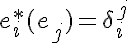 si l'on considere l'espace dual d'un espace vectoriel, c'est a dire l'espace des formes lineaires definies sur cet espace, comment definit-on sa base avec le symbole de kronecher?