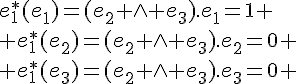 Notamment ici on aurait pas e2^e3=e1* puisque e2^e3 est un vecteur de E tandis que e1* est un vecteur de E*.