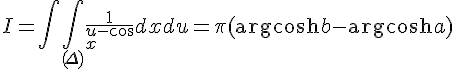 Ta fonction est continue donc tu peux appliquer Fubini et intégrer par rapport à u puis par rapport à x ou inversement.