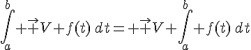 Pour compléter pour les éventuels visiteurs, avec un vecteur constant u et une fonction vectorielle f(t), on passe à la définition de Riemann de l'intégrale, la distributivité permet de sortir u de la somme puis on démontre par la définition quantifiée de la limite d'une suite vectorielle (pour tout epsilon>0, il existe N, un entier naturel tel que pour tout n>N, ||v(n)-v||<epsilon) que pour tout vecteur u constant et suite vectorielle v(n) convergeant vers v (ici vers l'intégrale de f(t)), la limite de u^v(n) est u^v car la norme de u^v est plus petite que le produit des normes et celle de u est constante.