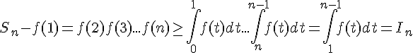 \sum_{k=0}^n f(k)[/B] = Sn et In=\int_1^n f(t) dt.