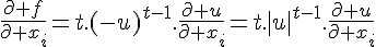 J'ai essayer de développer (règle du produit) la dérivée de f mais je ne parvient pas à cela, je ne vois pas comment il se débarasse de la dérivée du facteur |u|t-1.