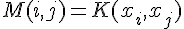 je viens de me rendre compte que si K(x,y) est une fonction noyau défine positive,est une matrice d'observations et M la matrice de Gram correspondante :