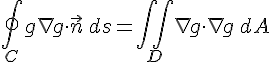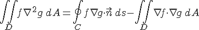 On m'a fait démontrer dans un exercice précédent la première identité de Green, qui énonce que pour deux fonctions f et g définies sur un domaine D entouré par une courbe C:
